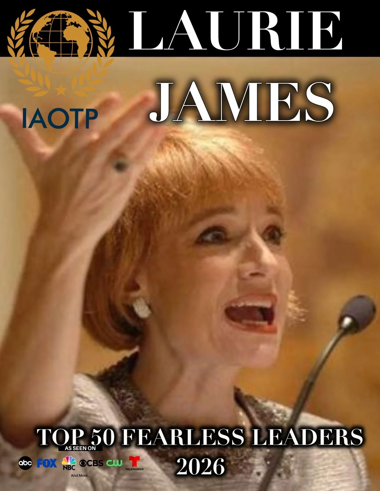 Laurie J. James, Master Career Director, Credentialed Résumé Writer, and International Job and Career Transition Coach, has been named by IAOTP as a TOP 50 FEARLESS LEADER (2026). She was honored as IAOTP Empowered Woman of the Year (2025) and Top Master Career Director of the Year (2024). With 40 years of industry experience, James is recognized for her pioneering work in career development, having co-founded the Professional Résumé Writing and Research Association (PRWRA) and leading global initiatives such as "Volunteers For Careers" following 9/11, and creating/naming the Toast of the Résumé Industry (TORI) Awards in 2001. As one of only 12 Master Career Directors (MCD) worldwide, she has helped over 14,000 clients transform their careers. James was honored (September 2025) on the NASDAQ Billboard in Times Square, and will receive upcoming recognition at IAOTP's Annual Awards Gala at the Plaza Hotel in New York City (December 2026).